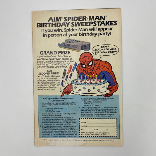 Exclusive Collectors Edition Spider-Man (1980) Marvel & Aim Toothpaste (GD)