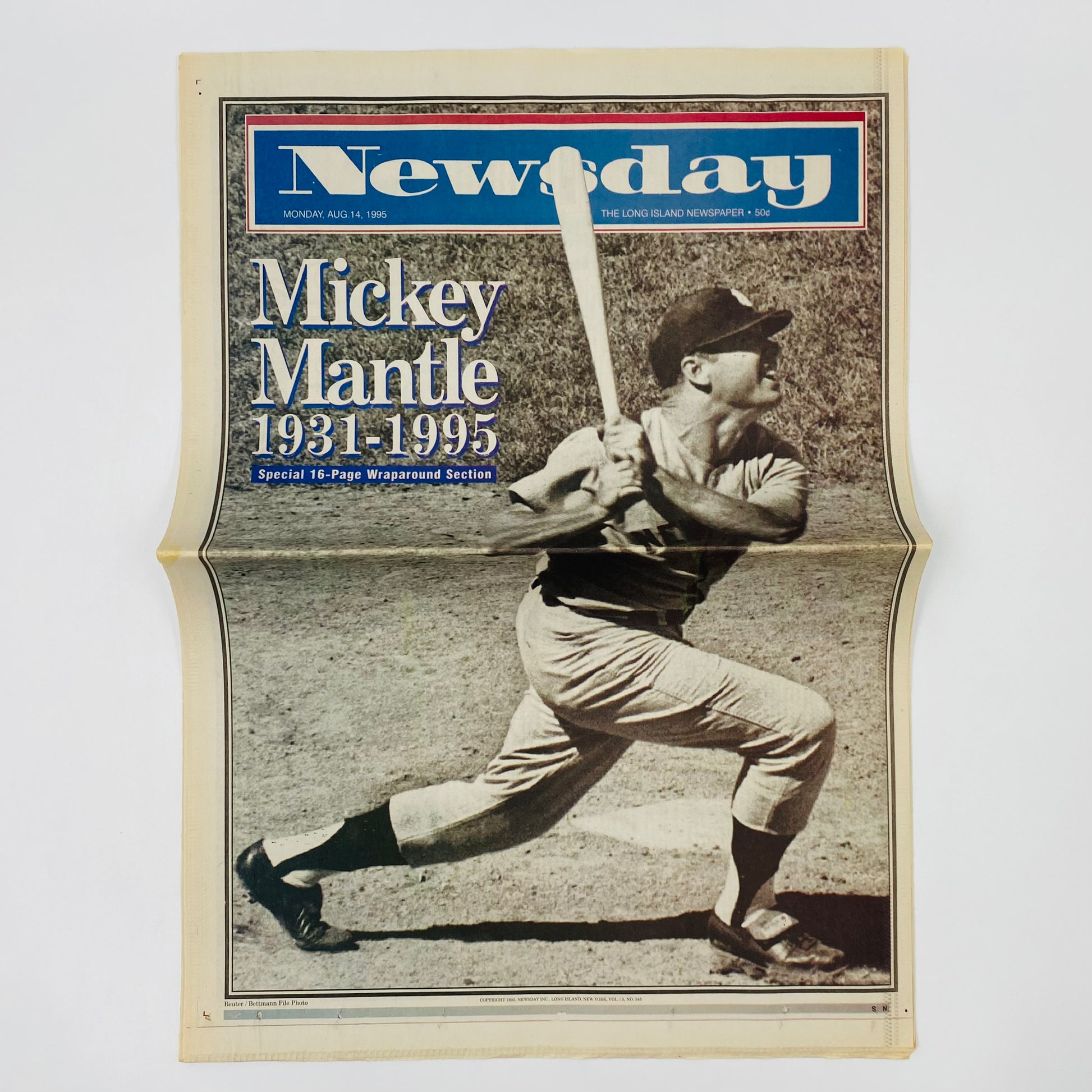 Newsday “The Long Island Newspaper” Monday, Aug. 14, 1995 Mickey Mantle Tribute 1931-1995