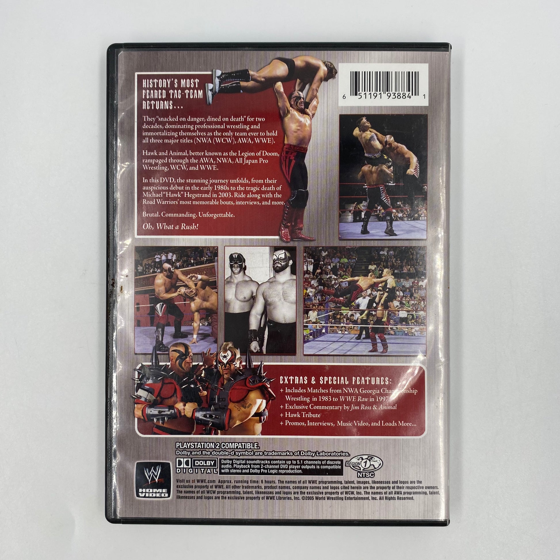 In this DVD, the stunning journey unfolds, from their auspicious debut in the early 1980s to the tragic death of Michael "Hawk" Hegstrand in 2003. Ride along with the Road Warriors' most memorable bouts, interviews, and more.